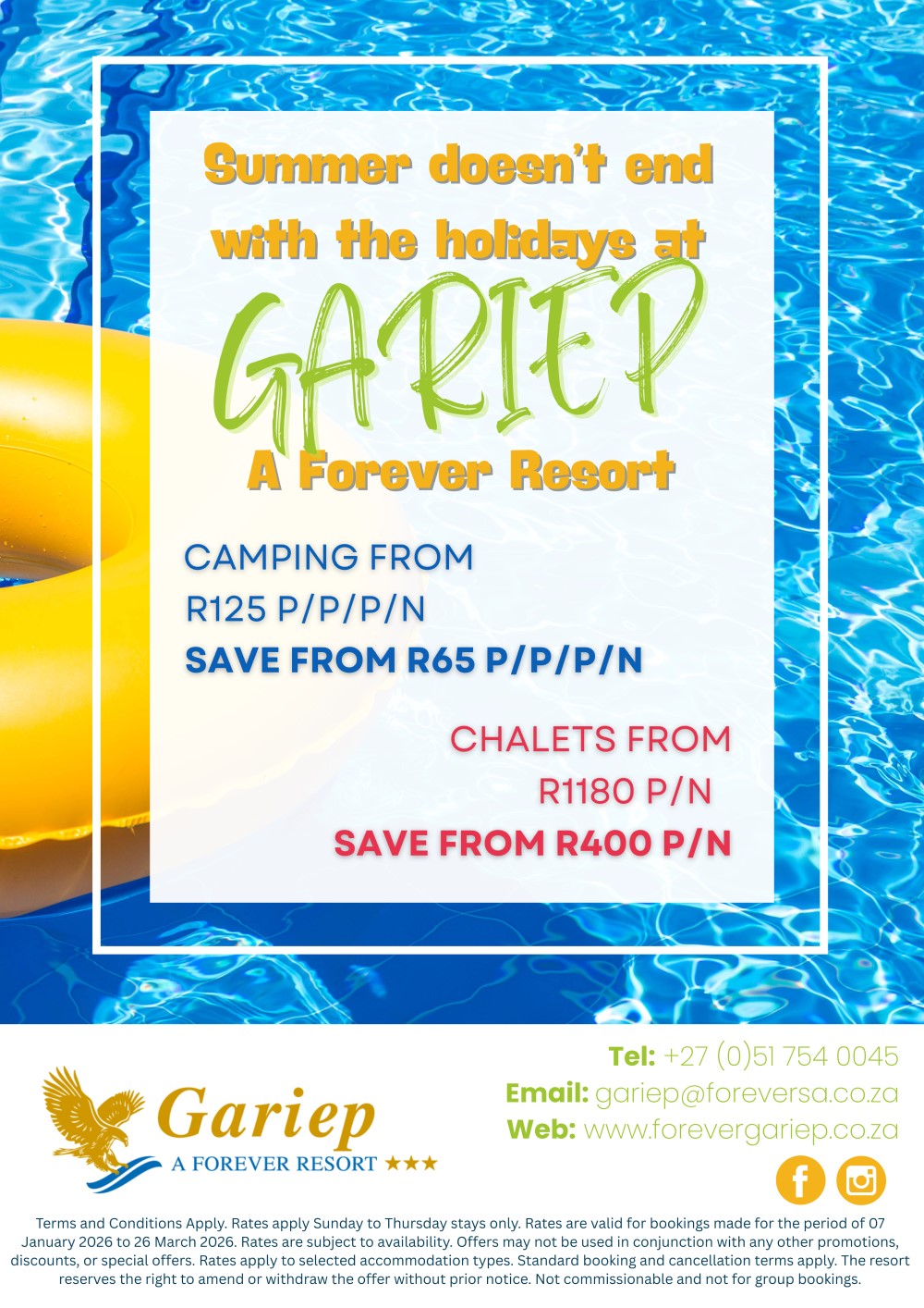 Summer doesn't end with the holidays at Gariep, a Forever Resort. Book your summer camping experience from January to March and save. Book now!